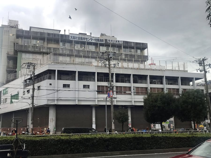 小室健一 Ar Twitter あいりん公共職業安定所の上に 大阪社会医療センター付属病院がある 建物はかなり老朽化している